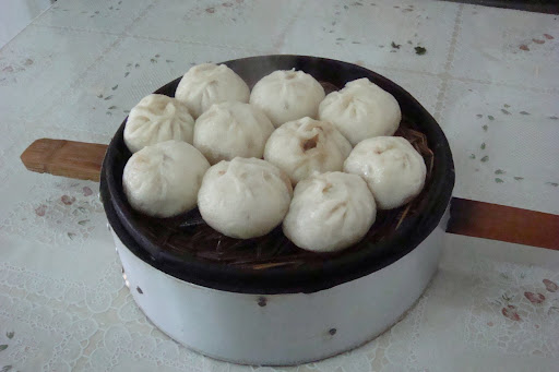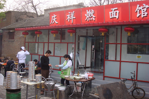 店外桿麵的小弟和一大鍋的滷煮火燒(煮豬下水...北京有名的小吃)