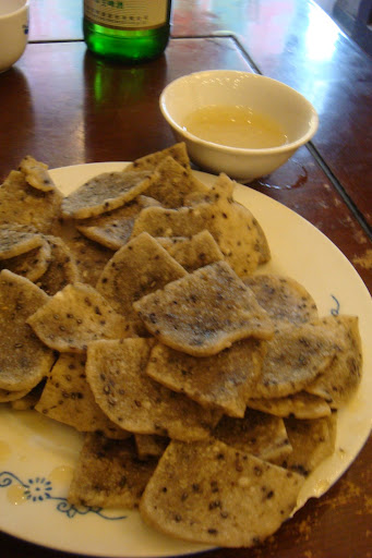 (聽說也是北京著名小吃 吃起來就像是炸的酥酥脆脆的糯米腸切片 配上蒜汁 下酒好阿)